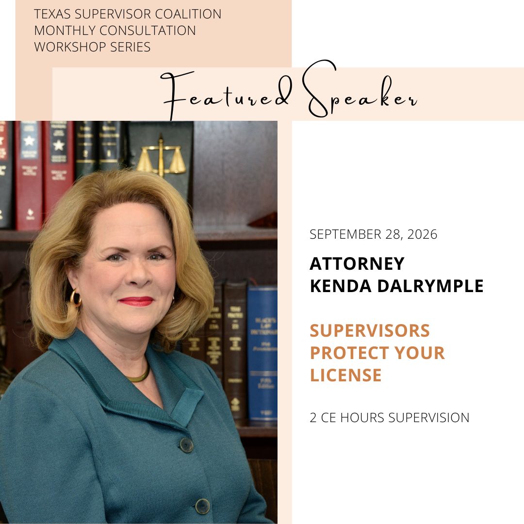 Attorney Kenda Dalrymple will be presenting the latest information on legal considerations, risk management, and best practices for supervisors to safeguard their licenses while answering your questions. 2 CEs Supervision for Counselors, MFTs, and Social Workers.